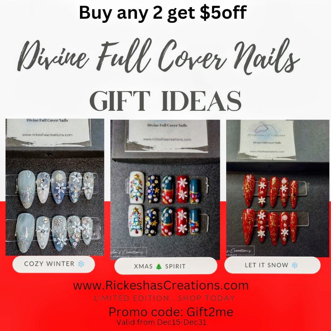 2* Xmas Spirit Custom Nail Set is created with each nail having different Designs on some nailsπ I by hand painted the Xmas tree π² to make it authentic & bold. I enjoyed creating this set it's just unique.